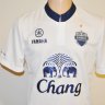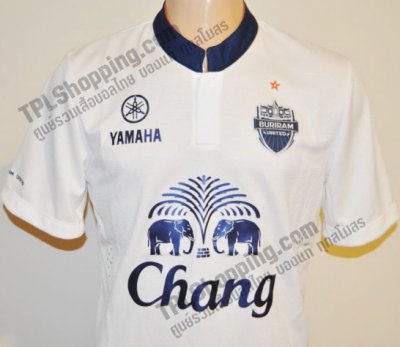 เสื้อแข่งบุรีรัมย์ยูไนเต็ด Buriram United ฤดูกาล 2013-2014 ทีมเยือน สีขาว ใหม่ ล่าสุด พร้อม คาราบาวแดงตัวเสื้อประกอบด้วยสปอนเซอร์ ดังนี้ Chang, YAMAHA, i-mobile, CP, King Power คาราบาวแดง และ Coca-Cola